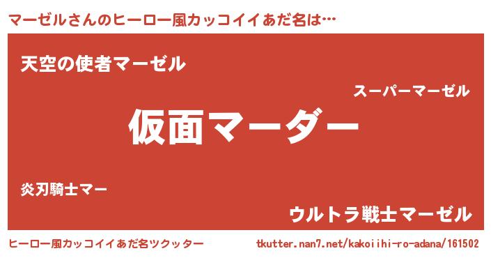 | 料理風あだ名 | 『マーゼルのカルパッチョ風』 |