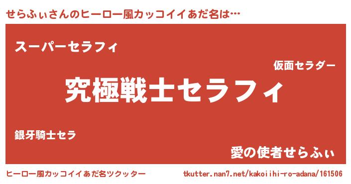 | 意味不明あだ名 | 『自称せらふぃ』『ペロリンせらふぃ』 |