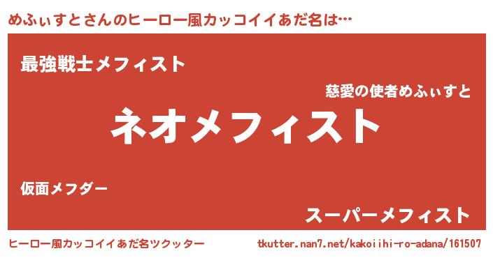 | ヘコむあだ名 | 『めふぃすと(爆)』『めふっふぃ~』 |