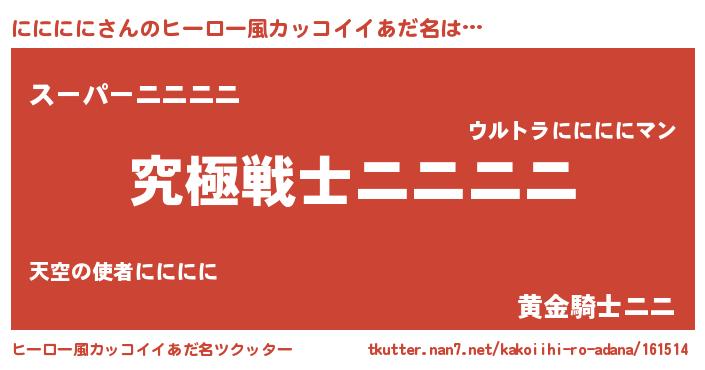 | 男性向けラノベタイトル風あだ名 | 『Re:ににににから始める異世界生活』 |