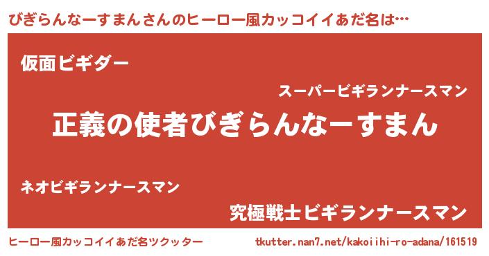 | 男性向けラノベタイトル風あだ名 | 『はたらくびぎらんなーすまんさま!』 |