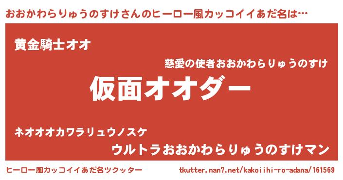 | 女子向けラノベタイトル風あだ名 | 『おおかわらりゅうのすけの玉の輿計画!』 |