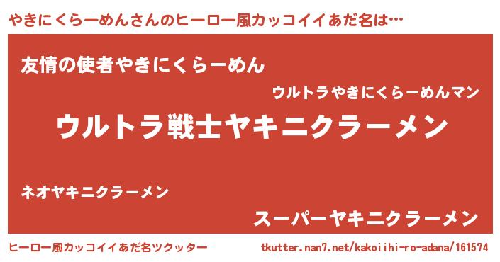 | 女子向けラノベタイトル風あだ名 | 『やきにくらーめんアンティーク』 |