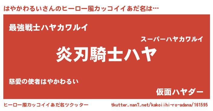 | 女子向けラノベタイトル風あだ名 | 『はやかわるい様がみてる』 |