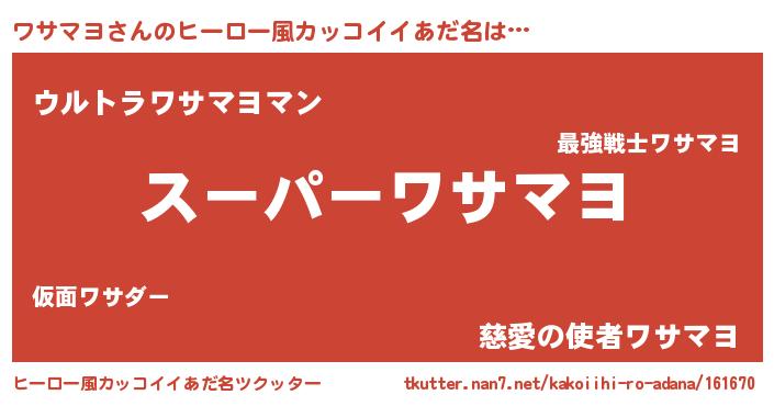 | ファンタジー風あだ名 | 『ワサフェル』『エターナルワサマヨー』 |