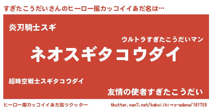 | 胡散臭い通販商品みたいなあだ名 | 『来世でも幸せになれる健康食品…その名も「すぎたこうだい」』 |