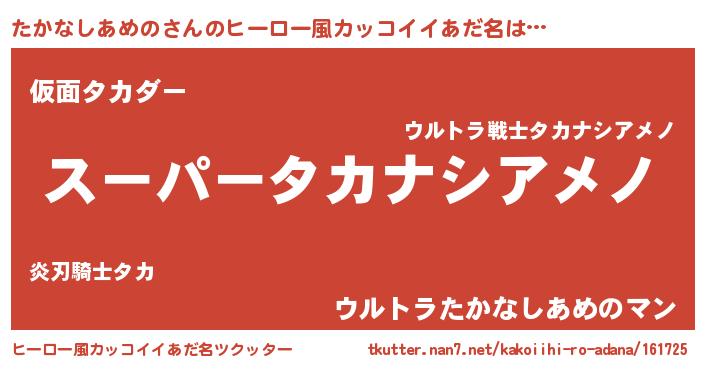 | 胡散臭い通販商品みたいなあだ名 | 『億万長者になれるブレスレット…その名も「たかなしあめの」』 |
