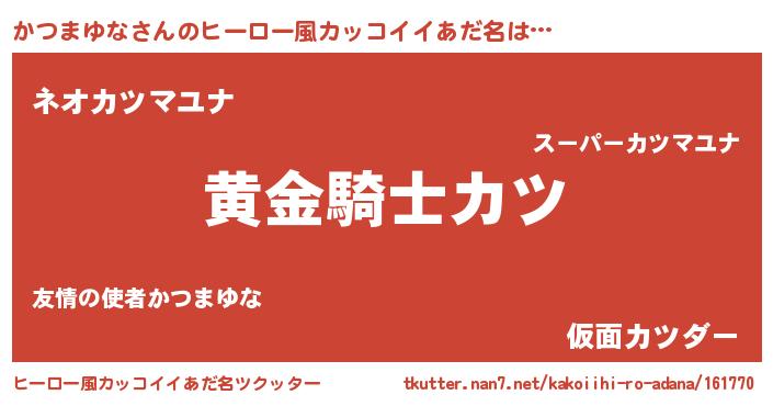 | 胡散臭い通販商品みたいなあだ名 | 『信頼と実績のサプリメント…その名も「かつまゆな」』 |