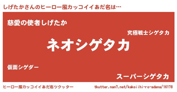 | ヘコむあだ名 | 『しげたか(笑)』『しげっふぃ~』 |