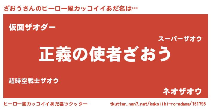 | ヘコむあだ名 | 『ざおう(小並感)』『ざおっふぃ~』 |
