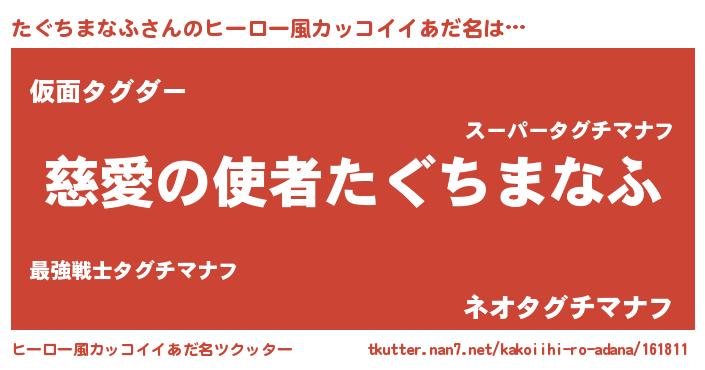 | ヘコむあだ名 | 『たぐちまなふ(笑)』『たぐもー』 |