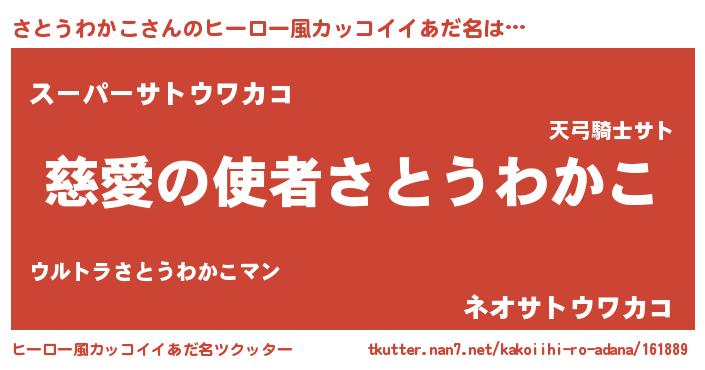 | 男性向けラノベタイトル風あだ名 | 『ノーゲーム・ノーサトウワカコ』 |