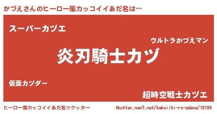 | 男性向けラノベタイトル風あだ名 | 『かづえの嫁は女の子じゃないと思った?』 |