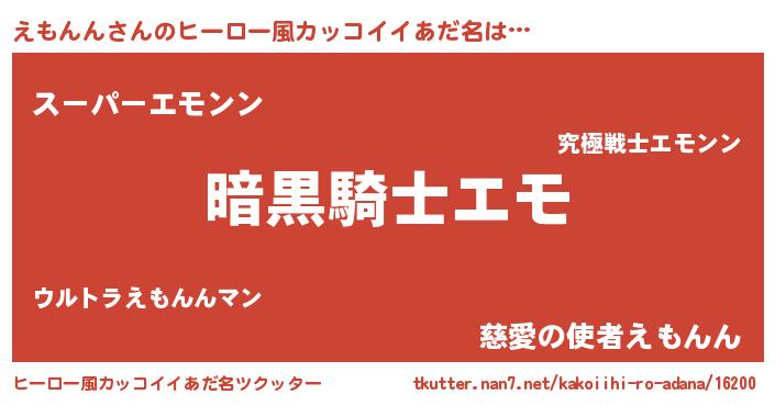 | 胡散臭い通販商品みたいなあだ名 | 『信頼と実績のサプリメント…その名も「えもんん」』 |