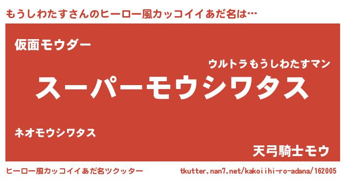 | 胡散臭い通販商品みたいなあだ名 | 『億万長者になれる霊験あらたかなお札…その名も「もうしわたす」』 |