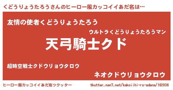 | 男性向けラノベタイトル風あだ名 | 『くどうりょうたろうの嫁は女の子じゃないと思った?』 |