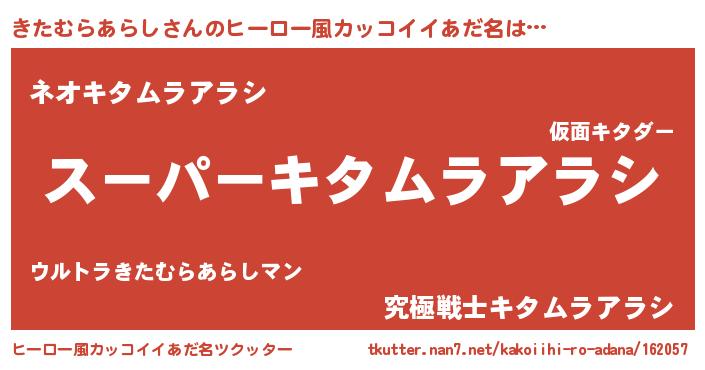 | 胡散臭い通販商品みたいなあだ名 | 『億万長者になれるブレスレット…その名も「きたむらあらし」』 |