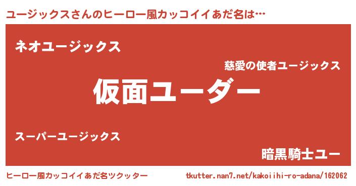 | 意味不明あだ名 | 『住所不定無職ユージックス(14歳)』 |