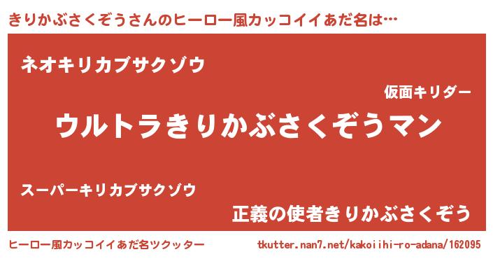 | 欧米人風あだ名 | 『きりかぶさくぞうクリステル』 |