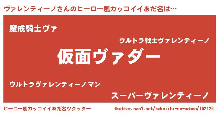 | 男性向けラノベタイトル風あだ名 | 『この素晴らしい世界にヴァレンティーノを!』 |