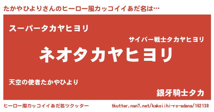 | ヘコむあだ名 | 『たかやひより(震え声)』『たかにゅー』 |