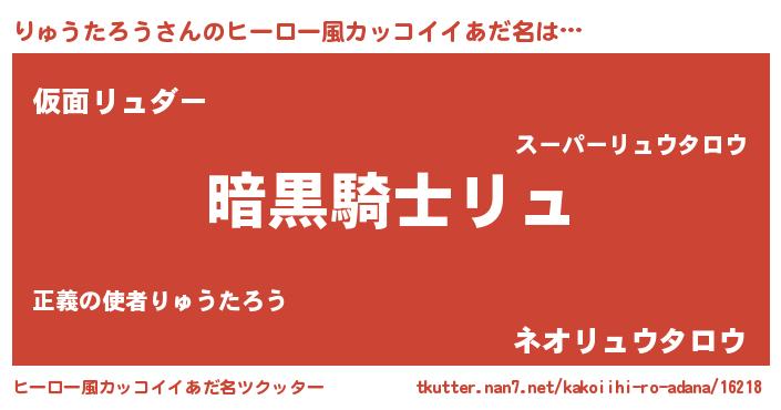 | 男性向けラノベタイトル風あだ名 | 『ダンジョンにりゅうたろうを求めるのは間違っているだろうか』 |