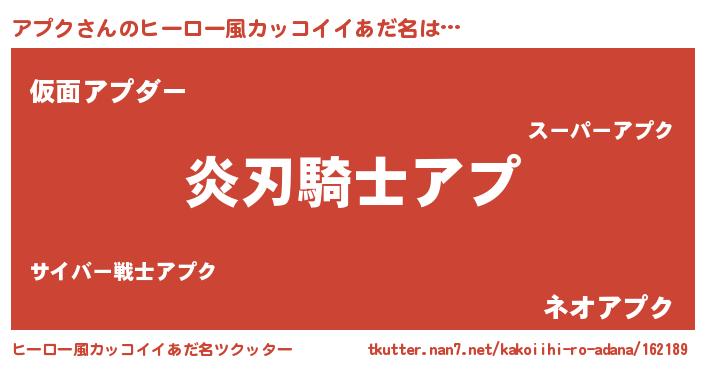 | ポケモン風あだ名 | 『ヒアプク』『アープイ』『ゼニアプ』 |