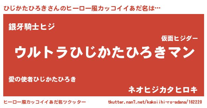 | 男性向けラノベタイトル風あだ名 | 『うちのひじかたひろきが世界を掌握している!』 |