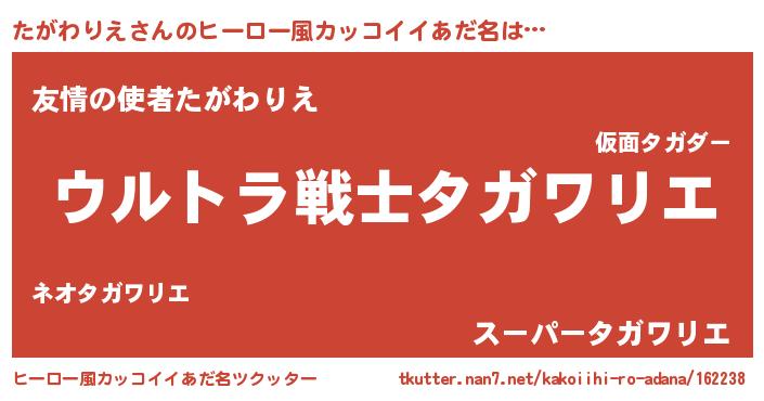 | ヘコむあだ名 | 『たがにゅー』『たがわりえ(笑)』 |
