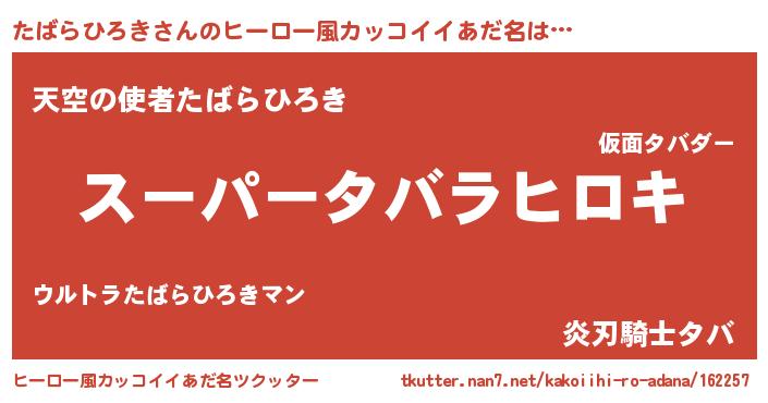 | 男性向けラノベタイトル風あだ名 | 『タバラヒロキスレイヤー』 |