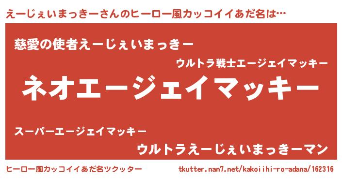 | 意味不明あだ名 | 『永久保存えーじぇいまっきー』 |