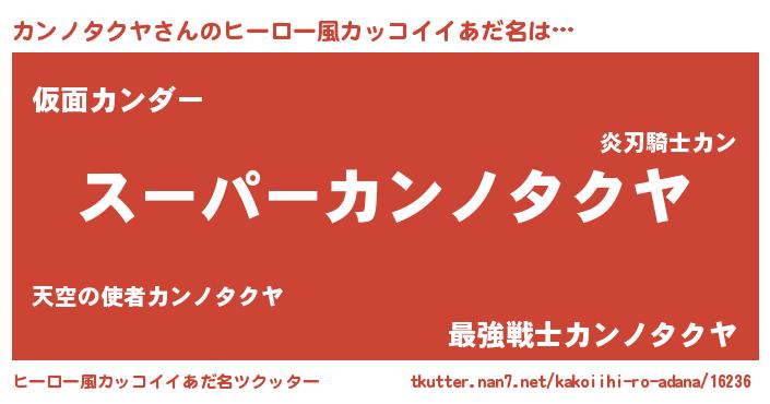 | 男性向けラノベタイトル風あだ名 | 『カンノタクヤアートオンライン』 |