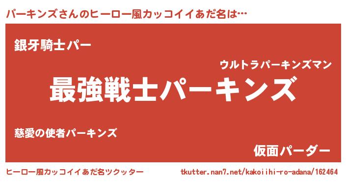 パーキンズさんのヒーロー風カッコイイあだ名をツクッター!