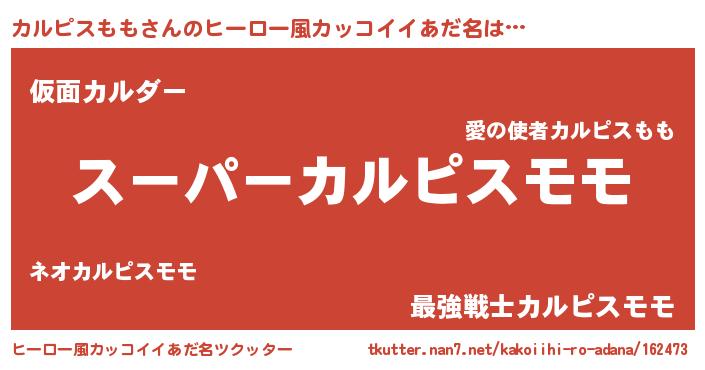| 女子向けラノベタイトル風あだ名 | 『カルピスもも姫と円卓の騎士』 |