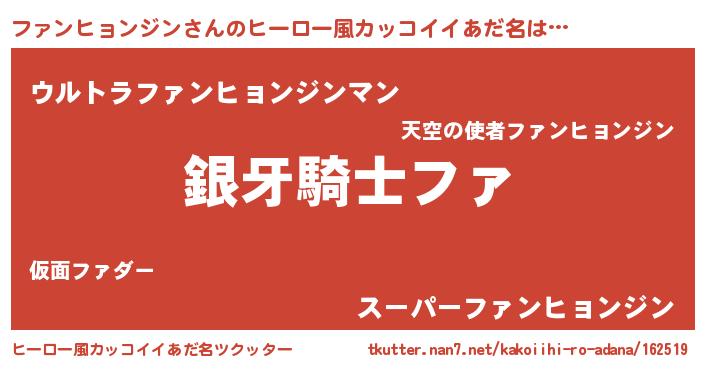 | ポケモン風あだ名 | 『ヒファンヒョンジン』『ファゴンZ』 |