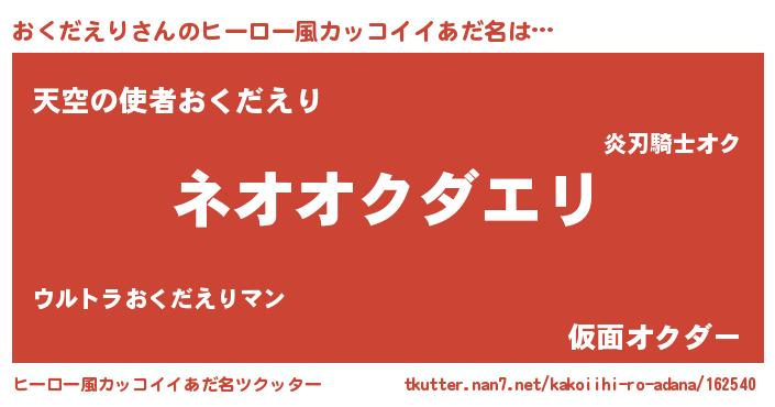 | 男性向けラノベタイトル風あだ名 | 『おくだえりという概念が存在しない退屈な世界 』 |