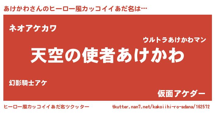 | 男性向けラノベタイトル風あだ名 | 『ノーゲーム・ノーアケカワ』 |