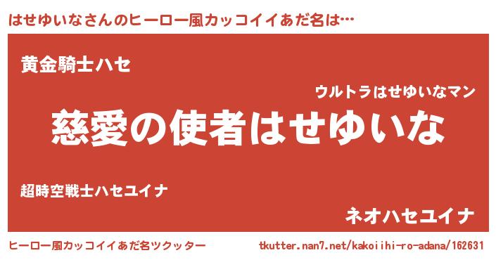 | ヘコむあだ名 | 『はせ太郎』『はせゆいな(笑)』 |