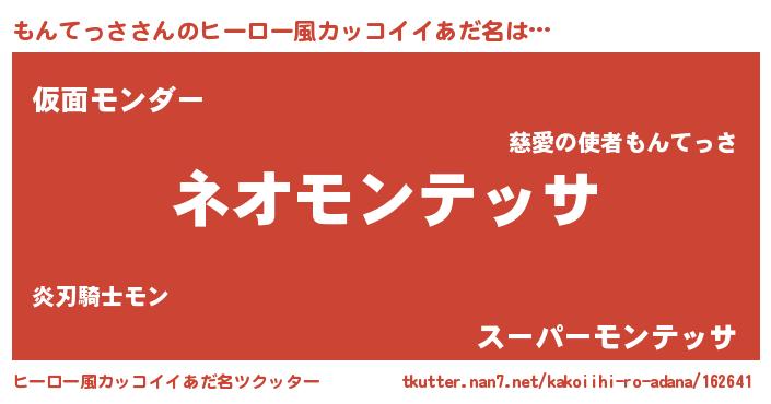 | 男性向けラノベタイトル風あだ名 | 『もんてっさという概念が存在しない退屈な世界 』 |