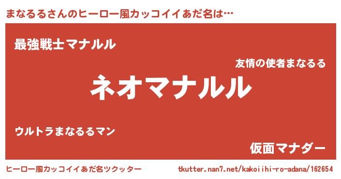 | 男性向けラノベタイトル風あだ名 | 『まなるるという概念が存在しない退屈な世界 』 |