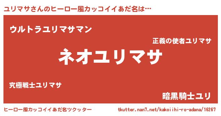 | 男性向けラノベタイトル風あだ名 | 『ユリマサという概念が存在しない退屈な世界 』 |
