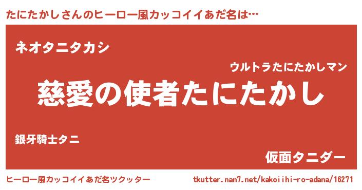 | ヘコむあだ名 | 『たにたかし(笑)』『なまこ酢』 |