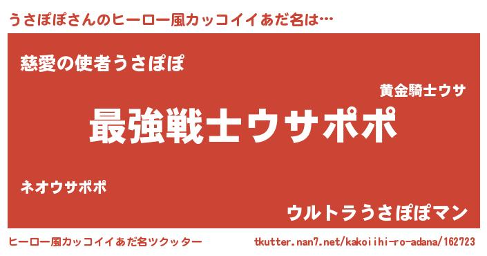 | 欧米人風あだ名 | 『アンジェラ・うさぽぽ』 |