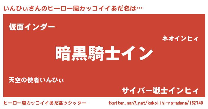 | 女子向けラノベタイトル風あだ名 | 『いんひぃは平凡を望む』 |