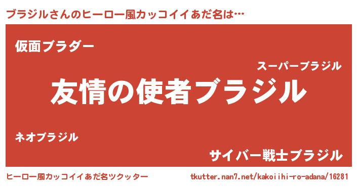 | 男性向けラノベタイトル風あだ名 | 『おまえをオタクにしてやるから、俺をブラジルにしてくれ! 』 |