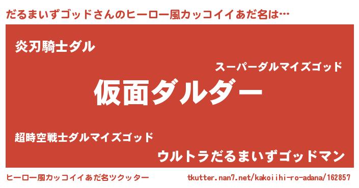 | 男性向けラノベタイトル風あだ名 | 『この素晴らしい世界にだるまいずゴッドを!』 |