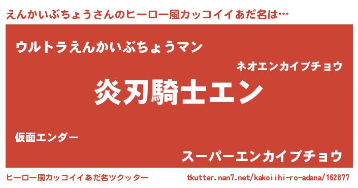 | 男性向けラノベタイトル風あだ名 | 『えんかいぶちょうの嫁は女の子じゃないと思った?』 |