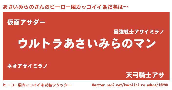 | 男性向けラノベタイトル風あだ名 | 『転生したらあさいみらのだった件』 |