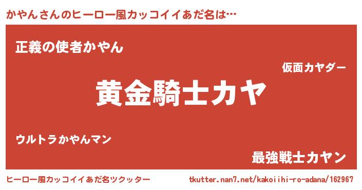 | 胡散臭い通販商品みたいなあだ名 | 『信頼と実績のサプリメント…その名も「かやん」』 |