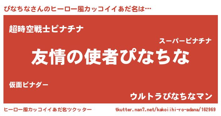 | 男性向けラノベタイトル風あだ名 | 『おまえをオタクにしてやるから、俺をぴなちなにしてくれ! 』 |